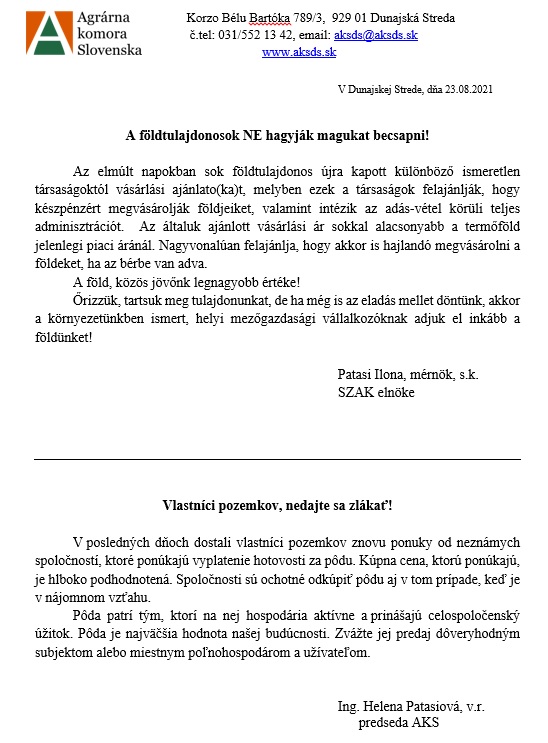 Vlastníci pozemkov, nedajte sa zlákať!